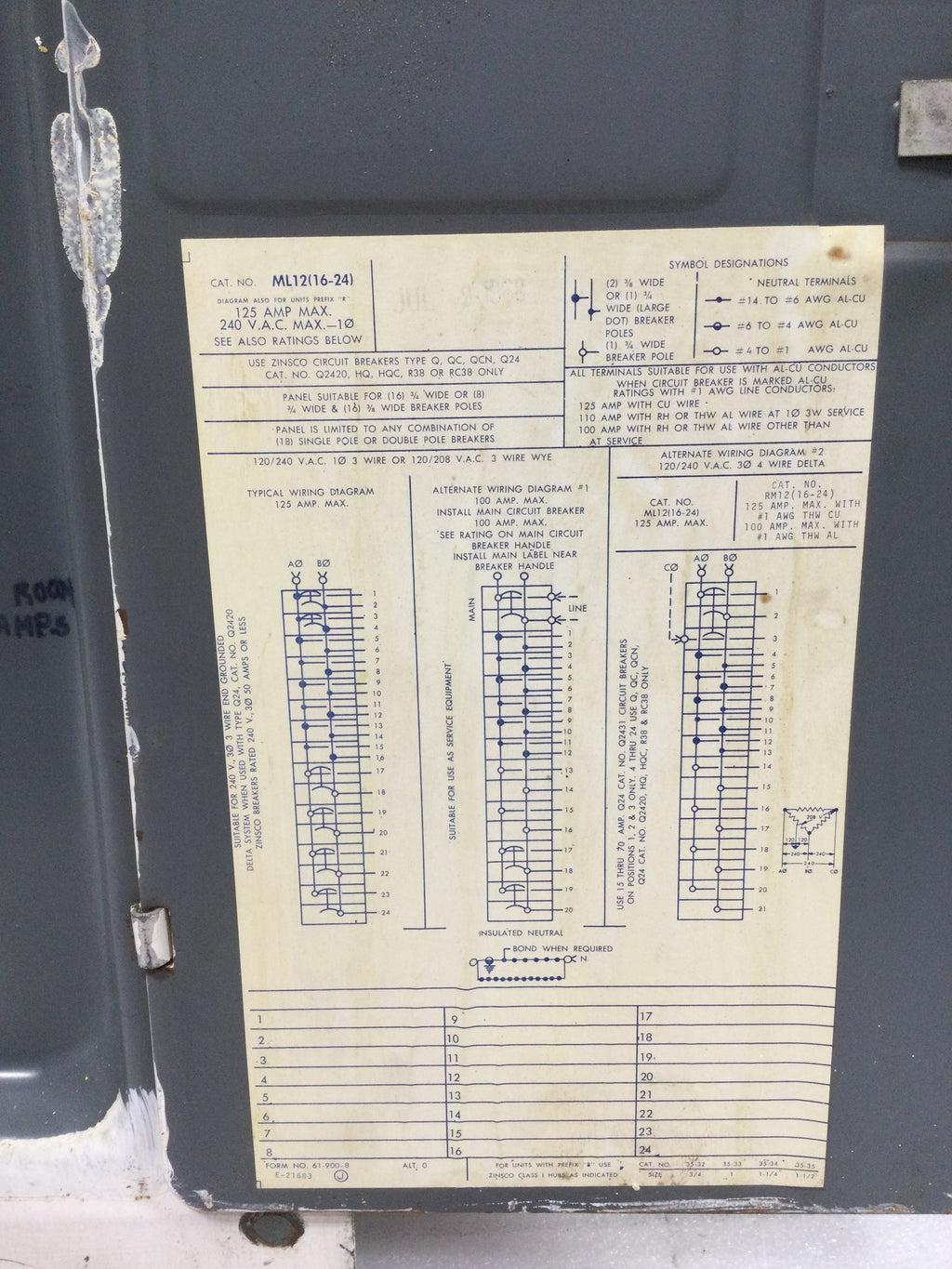 Zinsco ML12(16-24) 125 Amp 120/240V 1 Phase 3 Wire 24 Space Panel Cover 24 1/4" x 10 3/4"