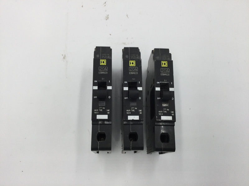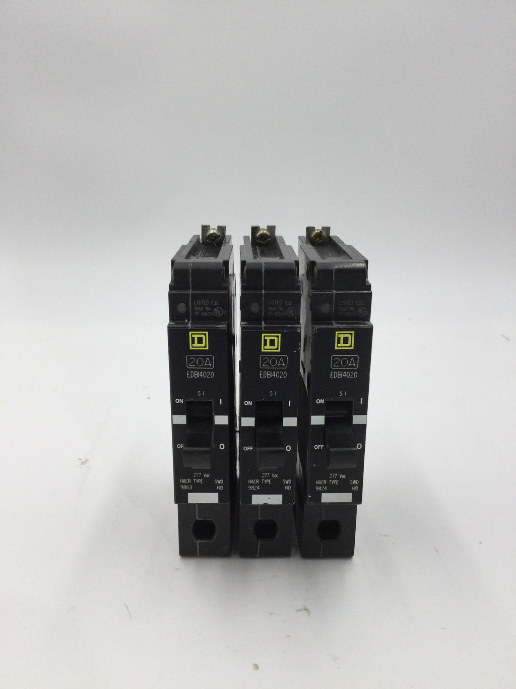 Square D EDB14020 20 Amp 1 Pole 480V Circuit Breaker - Lot of 3