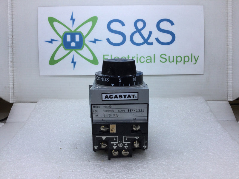 AGASTAT 7012AD Delay Timer 5-50 Sec. Delay 120V 60Hz Mounting Plate Included
