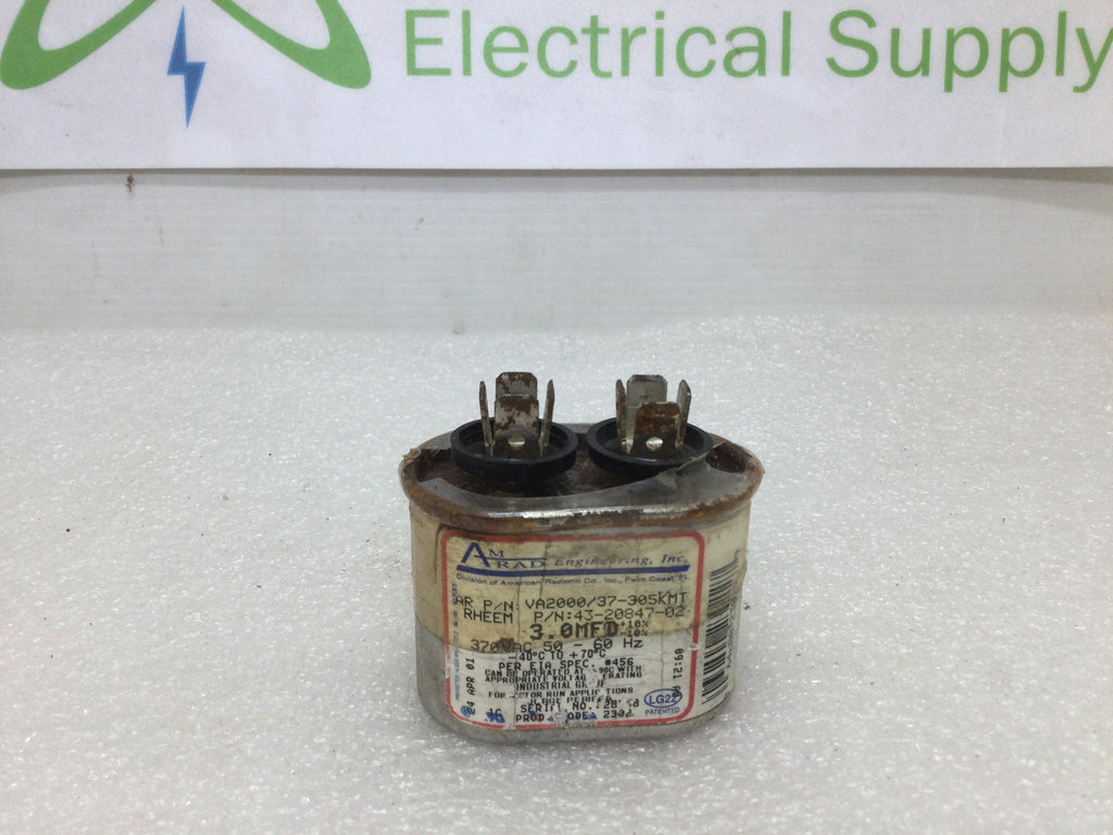 Amrad 3.0 uF MFD 370 / 440 Volt VA2000-37-305 Run Capacitor