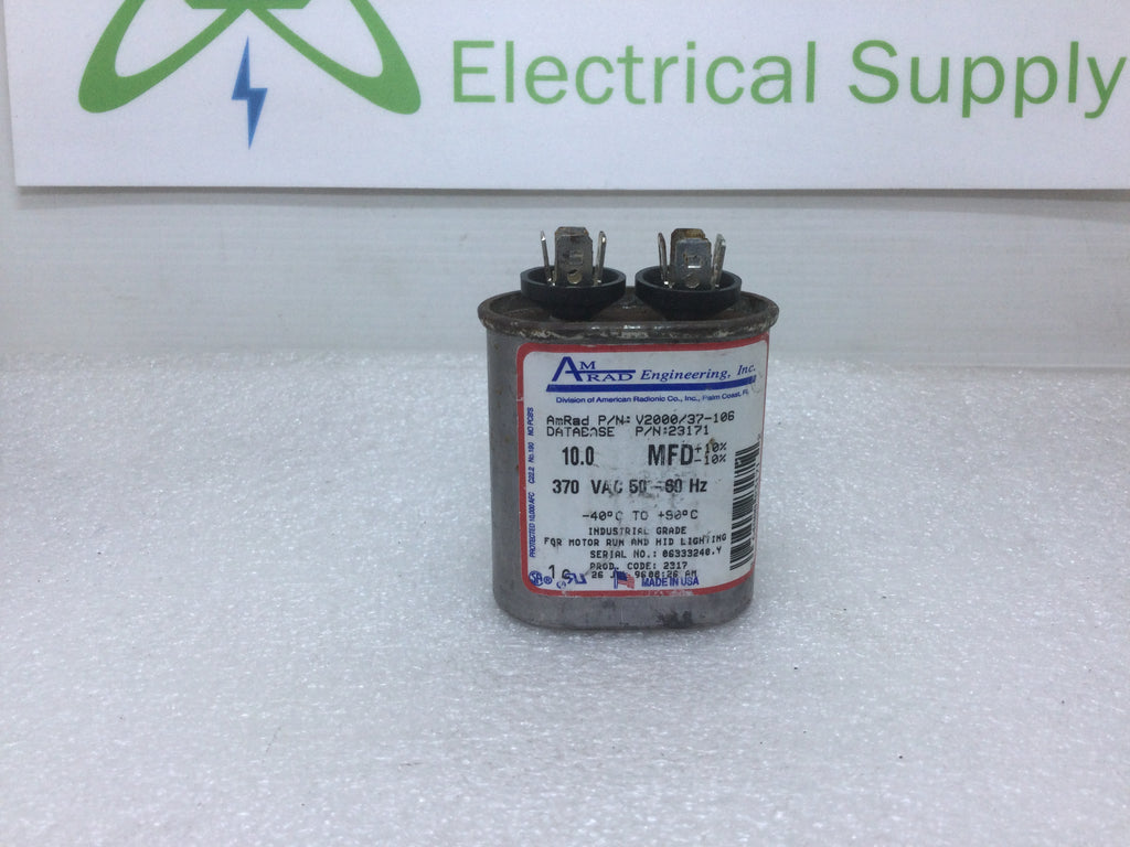 Amrad Capacitor 10.0 MFD +/- 10% 370V 50-60Hz V2000/37-106 P/N 23171