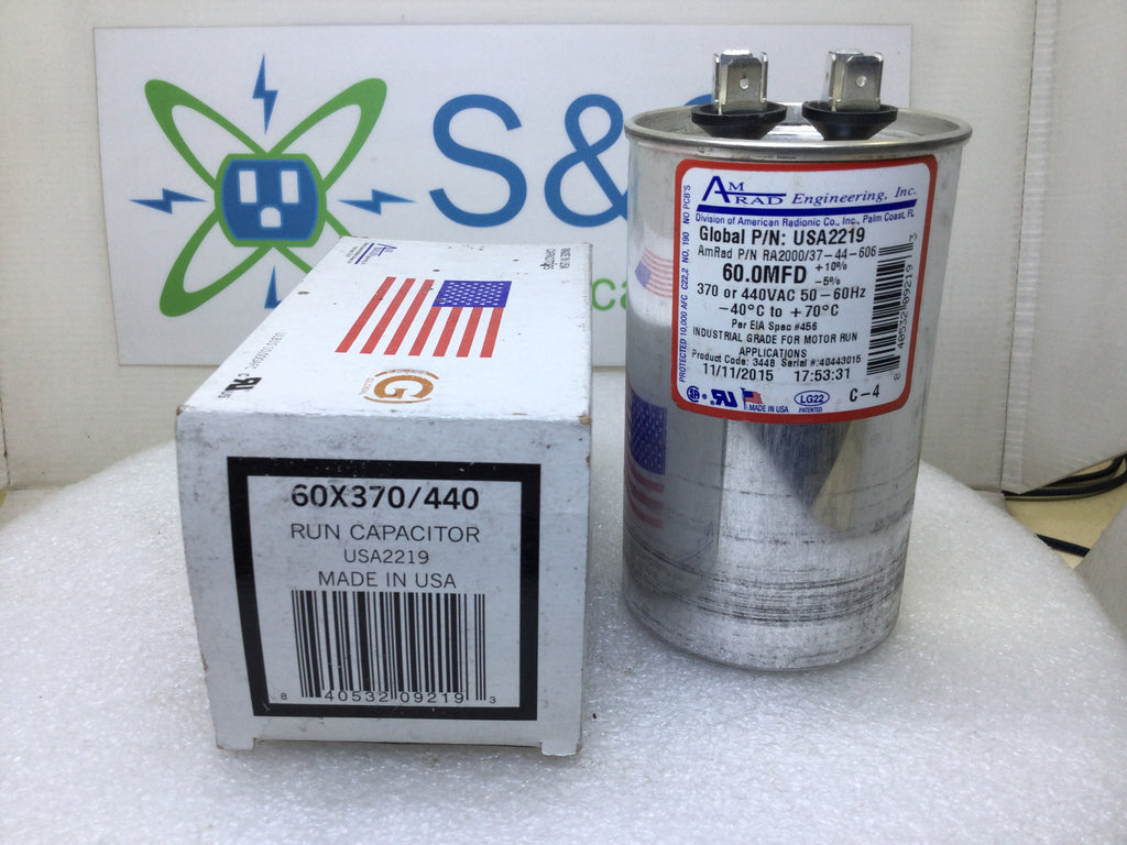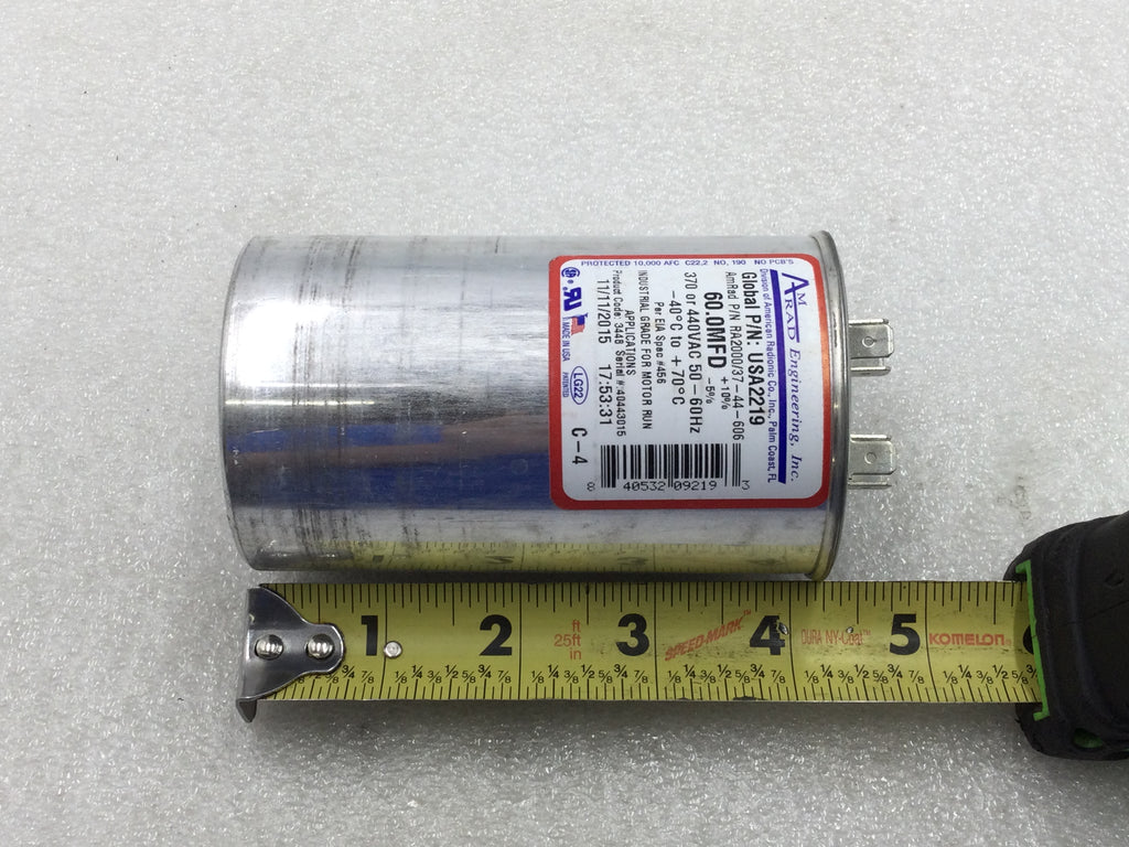 Amrad USA2219 60.0MFD +10%/-5% 370/440VAC 50/60Hz 70c/-40c Capacitor