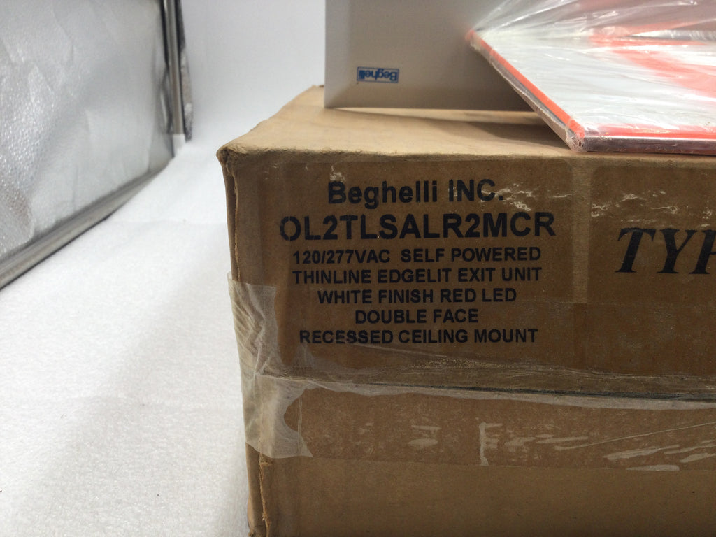 The Beghelli OL2TLSALR2MCR is a professional-grade LED exit light engineered for demanding commercial environments. This double-face unit mounts directly to mullions, offering optimal visibility from multiple viewing angles. Operating on 120/277 VAC, it delivers reliable performance across standard electrical configurations. The red LED display provides high-contrast visibility in low-light conditions, meeting code requirements for emergency egress applications. Built with commercial-duty construction, this fixture ensures dependable operation in retail, industrial, and institutional settings where safety compliance is non-negotiable.
