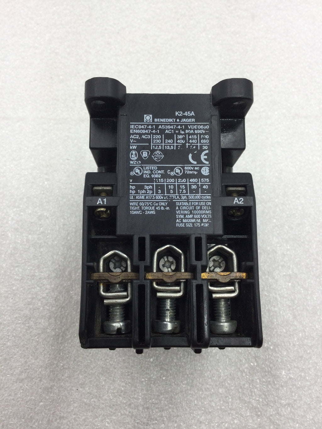 Benedikt & Jager K2-45A 72 Amp 3 Phase 120-600 VAC Contactor with 120 VAC Coil