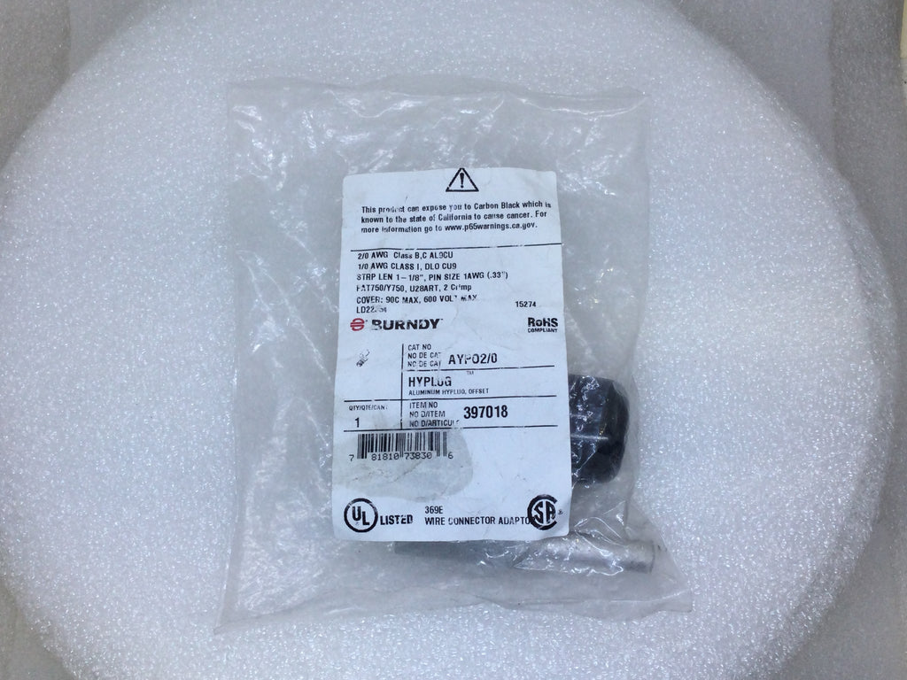 Burndy AYPO2/0 Compression Pin Adapter delivers dependable electrical connections for industrial applications. This compression-style connector provides secure termination with minimal voltage drop.