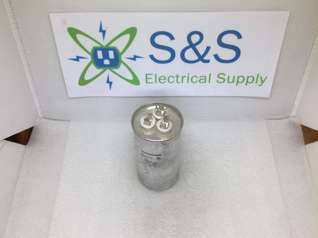 CD45/5X440R; 45+5 MFD, +10/-5%  440Vac, Round Dual Run Capacitor
