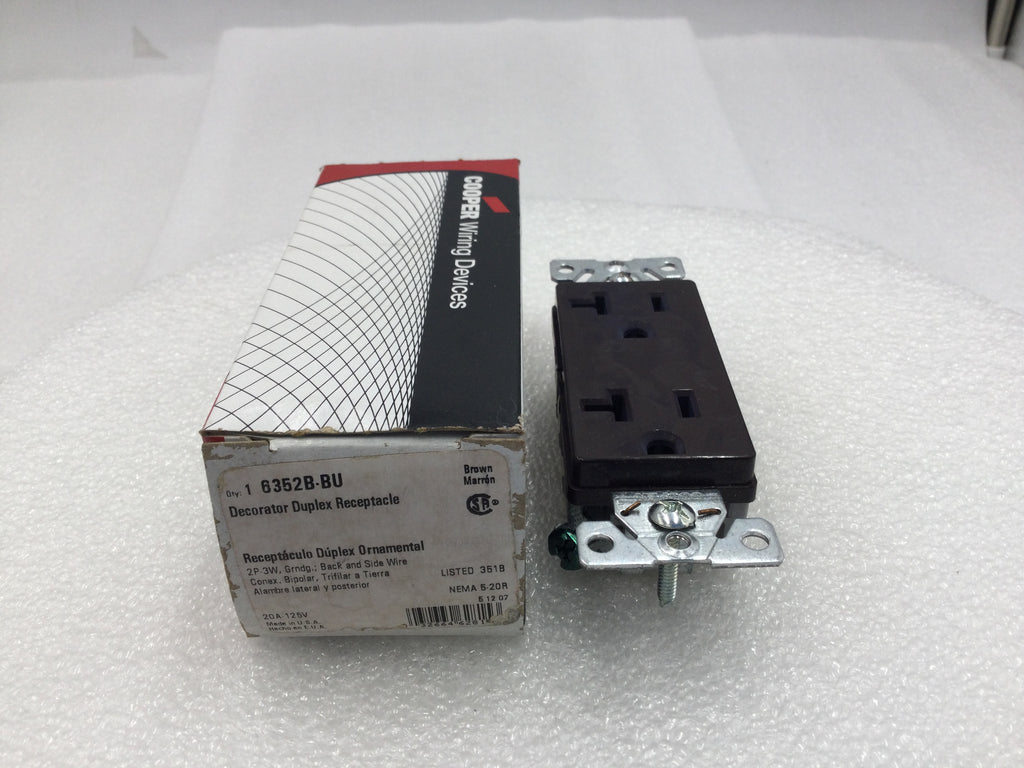 The Cooper 6352B-BU is a 20-amp, 125-volt duplex receptacle with a decorator-style face plate. UL and NEC compliant, it provides reliable power distribution for residential and commercial installations. Perfect for any room requiring dual outlet access.