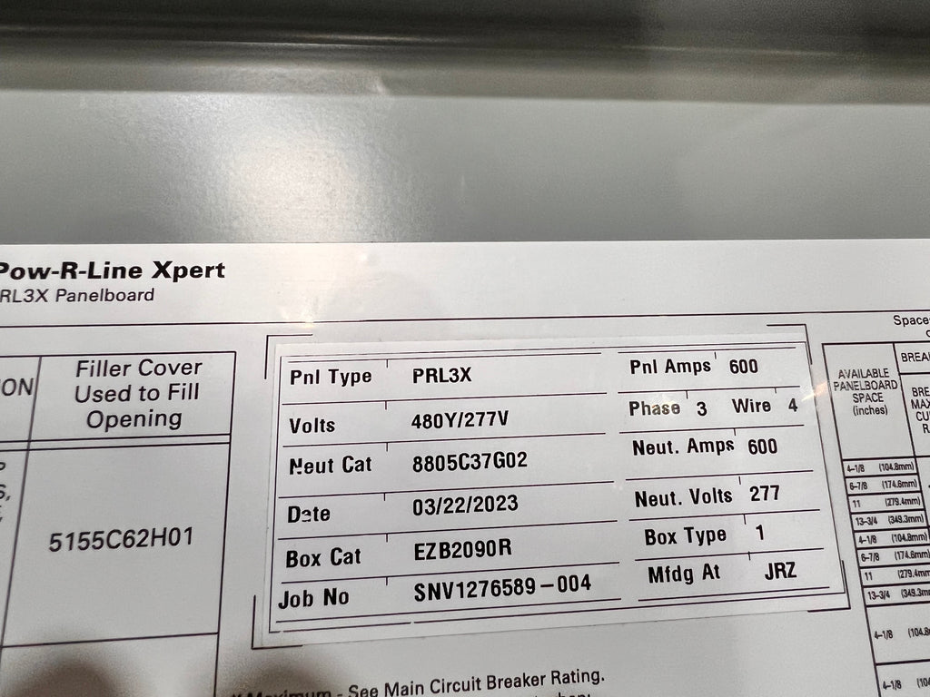 The Pow-R-Line Xpert (PRLX) series by Eaton offers intelligent circuit protection for panelboards and switchboards. Let’s break down the details of the PRL3X 600 Amp 480Y/277V configuration: