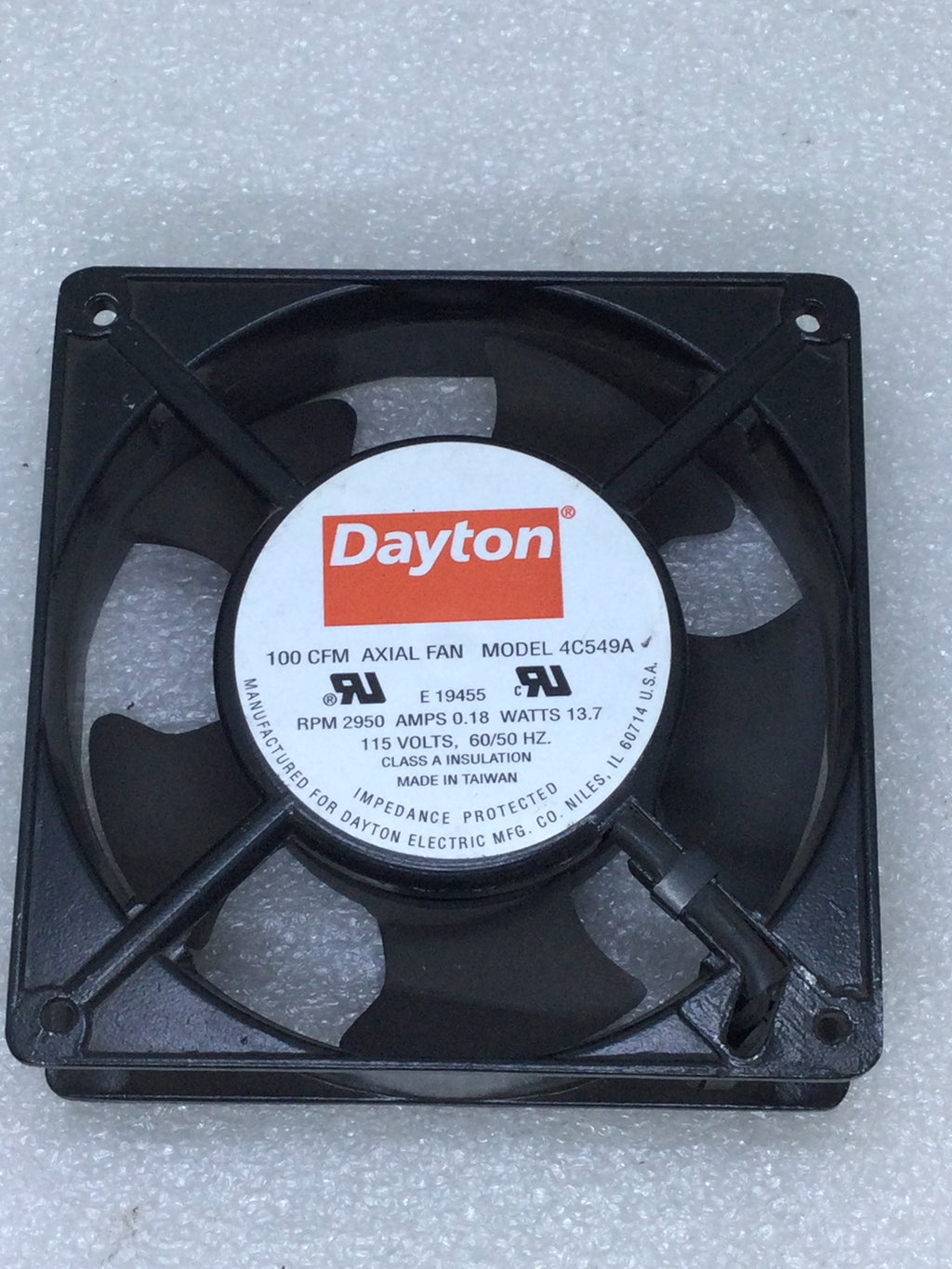 Dayton 4C549A Axial Cooling Fan 100 CFM 115 VAC 2950 RPM Class A
