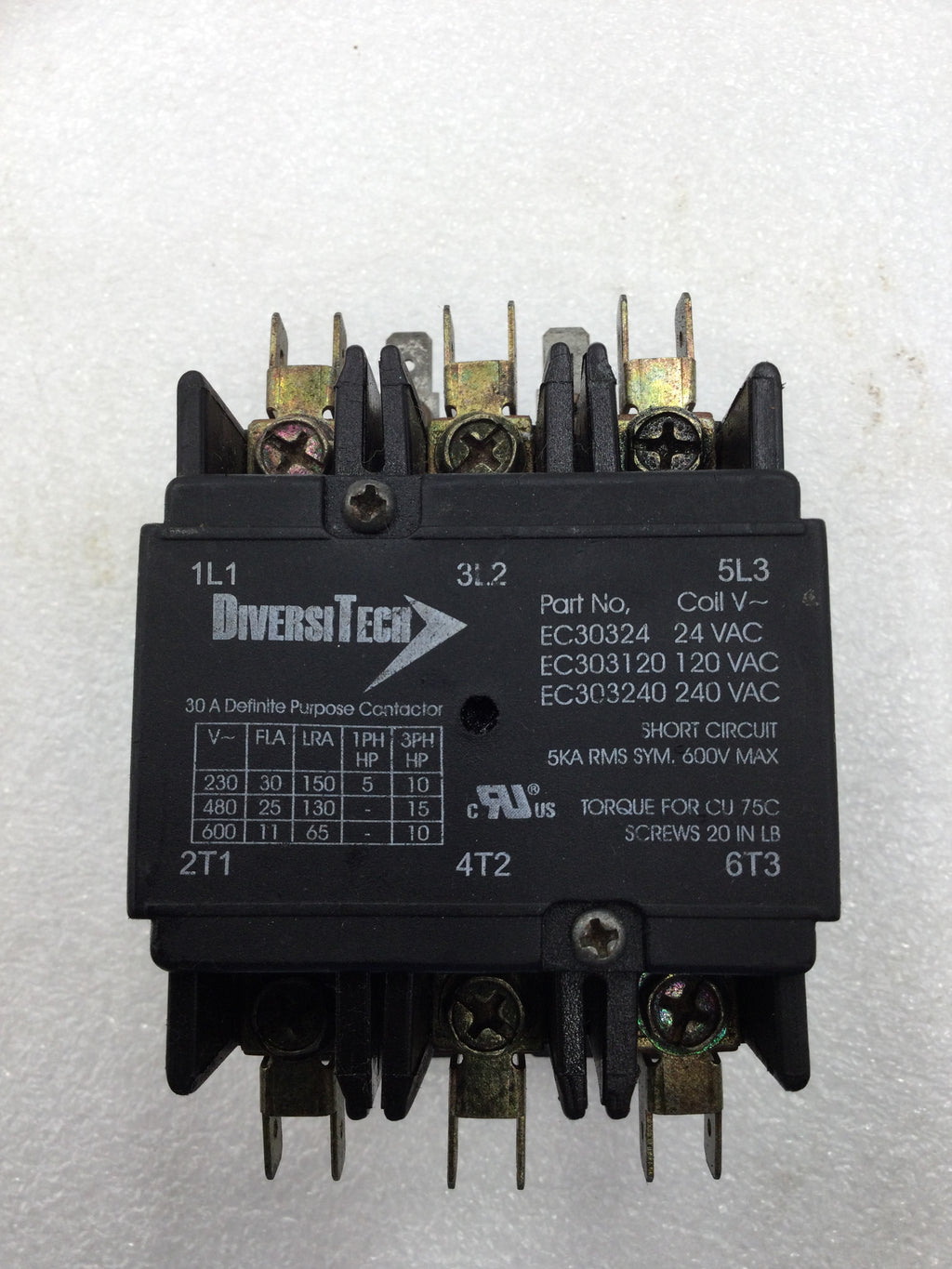 DiversiTech EC30324 30 Amp 3 Pole 230-600 VAC 10-15HP Contactor with 24 VAC Coil