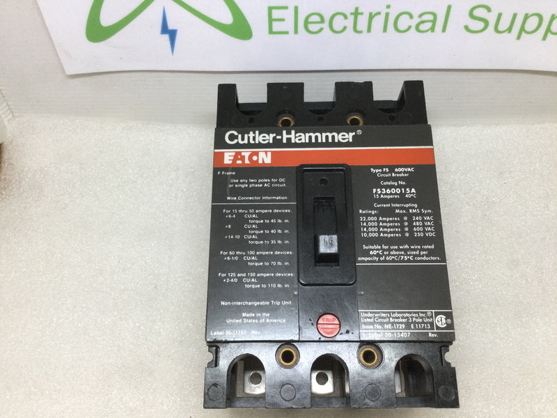 Eaton Cutler Hammer Fs360015a 15a 600v 3 Pole Circuit Breaker 15 Amp 3 Pole 600 Vac
