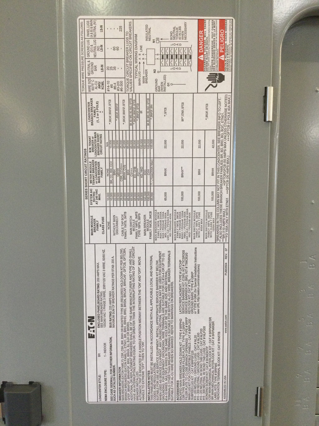 Eaton/Cutler-Hammer BRP30NC200 30 Space/60 Circuit 200A 120/240VAC Type BR Plug On Neutral Copper Buss