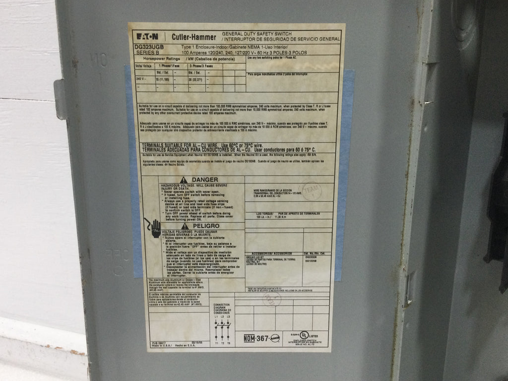 • Type: Type 1 Enclosure, Non Fusible Safety Switch/Disconnect