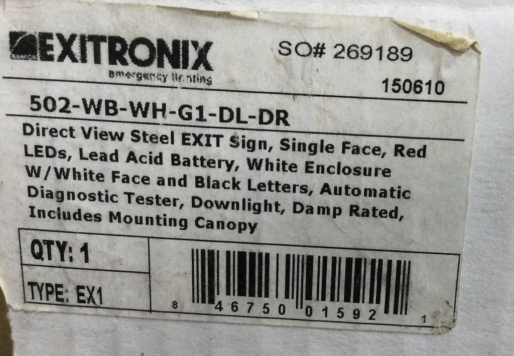 Exitronix 502-WB-WH-G1-DL-DR Exit Sign
