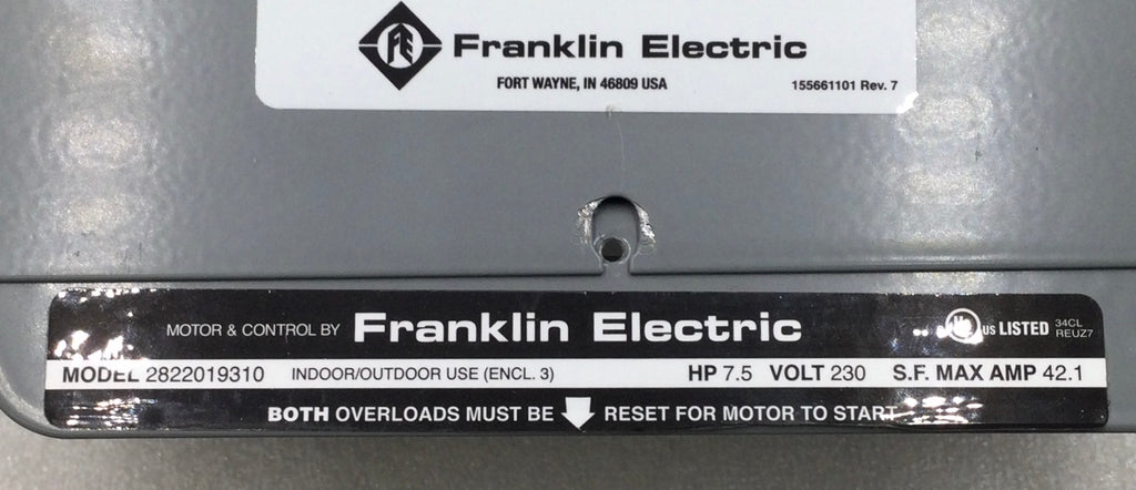 Franklin Electric 2822019310 42.1 Amp 2-Pole 230V Control Panel