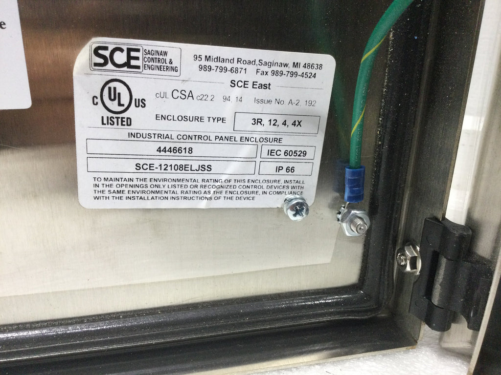 4. Mounted in Saginaw Controls and Engineering NEMA 3R, 12, 4, 4x Stainless Steel Enclosure