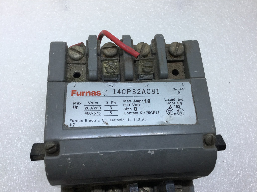 The Furnas 14CP32AC81 Starter Series B is an 18 Amp, 600 Volt size 0 motor starter. It has a NEMA 1 rated enclosure for indoor use, and is designed to provide optimal operations in commercial applications.