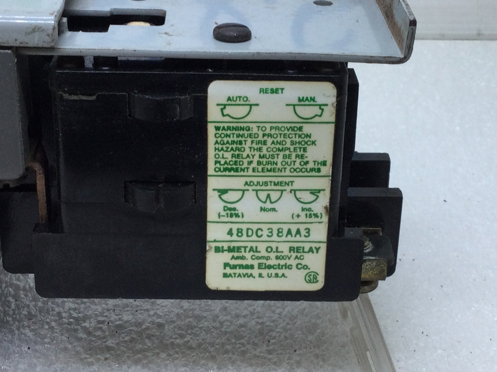 Includes: Furnas 48DC38AA3 Bi-Metal O.L. Relay