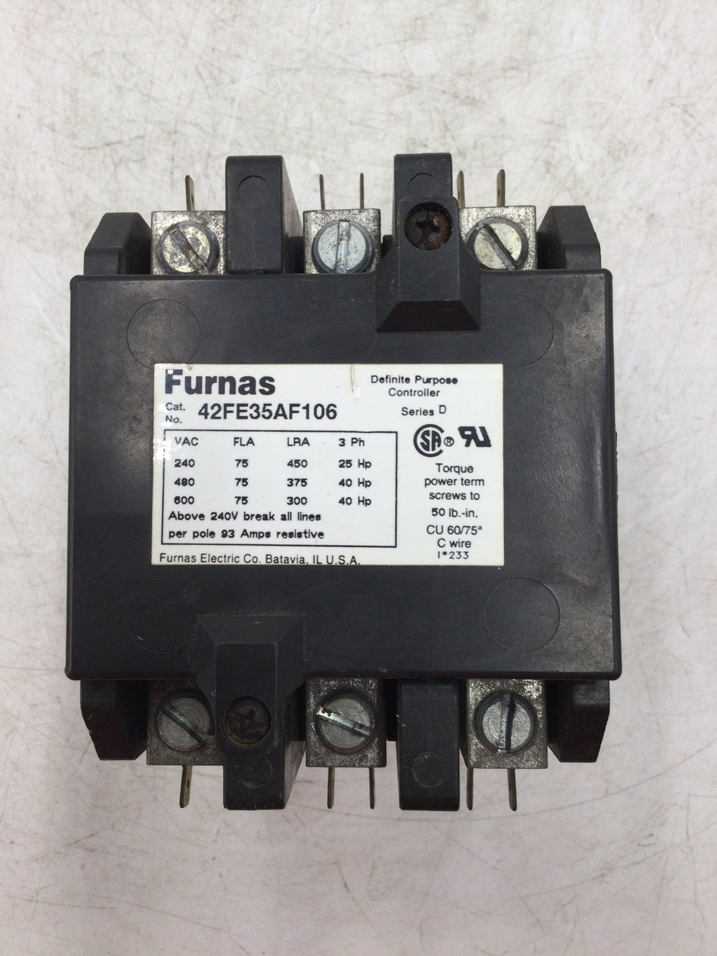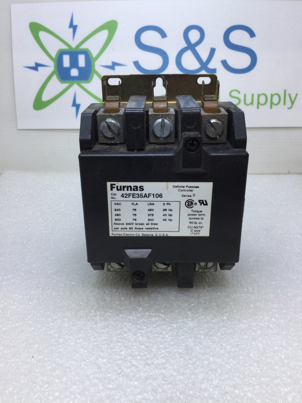 The Siemans Furnas 42FE35AF106 contactor is a definite purpose contactor rated for up to 75 amps and 240/480/600 VAC. Built with quality components, it provides reliable, safe operation in demanding applications.