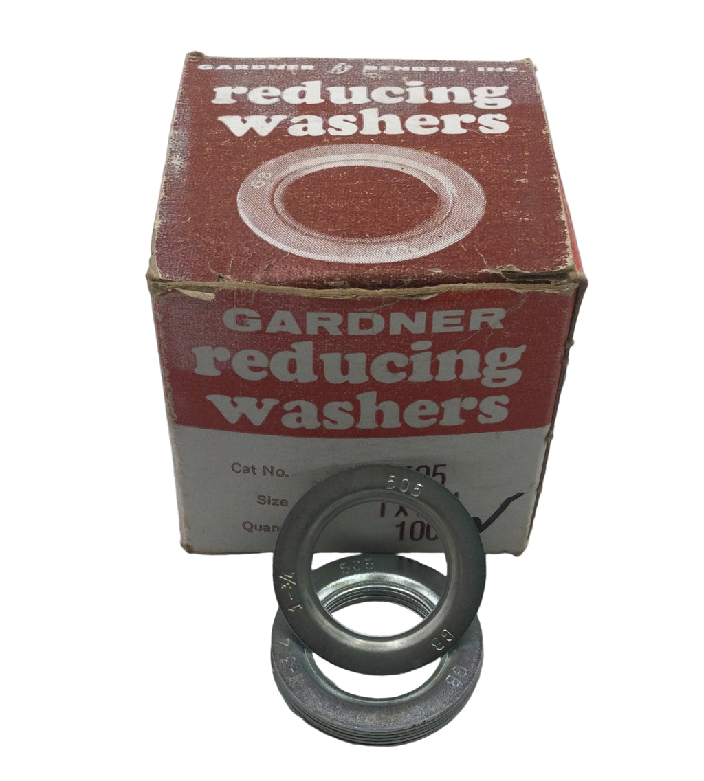 Gardner Bender 505 reducing washers measure 1" x 3/4" and are designed to provide a secure fit between components of differing sizes. Crafted for durability, these washers ensure reliable alignment and reduce wear, making them ideal for various electrical and mechanical applications.