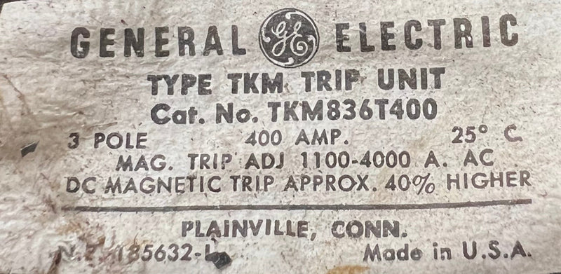 The GE TKM836F000 is an 800 Amp, 3-pole circuit breaker rated for 600V applications, featuring a 400 Amp trip setting. Designed for reliable circuit protection, it balances high capacity with precise trip control.