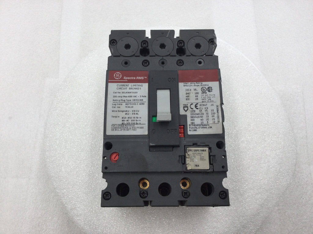GE Spectra RMS SELA36AT0100 100 Amp 3 Pole 600V Circuit Breaker - Flawed
