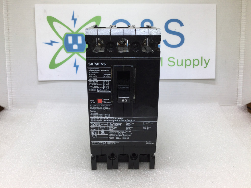 Siemens HED43B090 Molded Case Circuit Breaker 3 Pole 90 Amp 480V