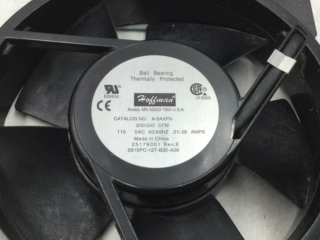 Hoffman A-6XFN Cooling Fan 200/240CFM 115VAC 50/60Hz .31-.28Amps Rev.E