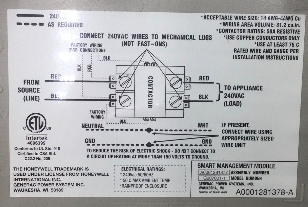 Honeywell G007001-1 50 Amp 240V Smart Management Module Enclosure Only/No Guts