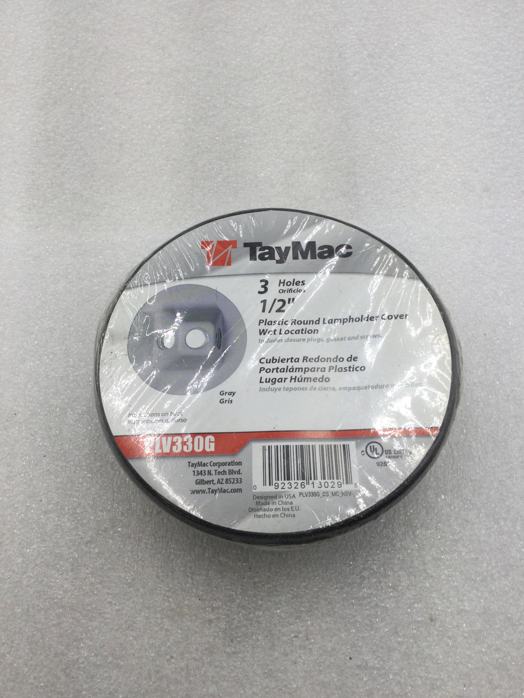 This Hubbell/TayMac PLV330G plastic weatherproof lamp holder base features a round design with three holes for easy installation. Its grey color blends seamlessly with any outdoor setting. Made of durable plastic, this lamp holder is built to withstand harsh weather conditions and provide long-lasting lighting solutions.