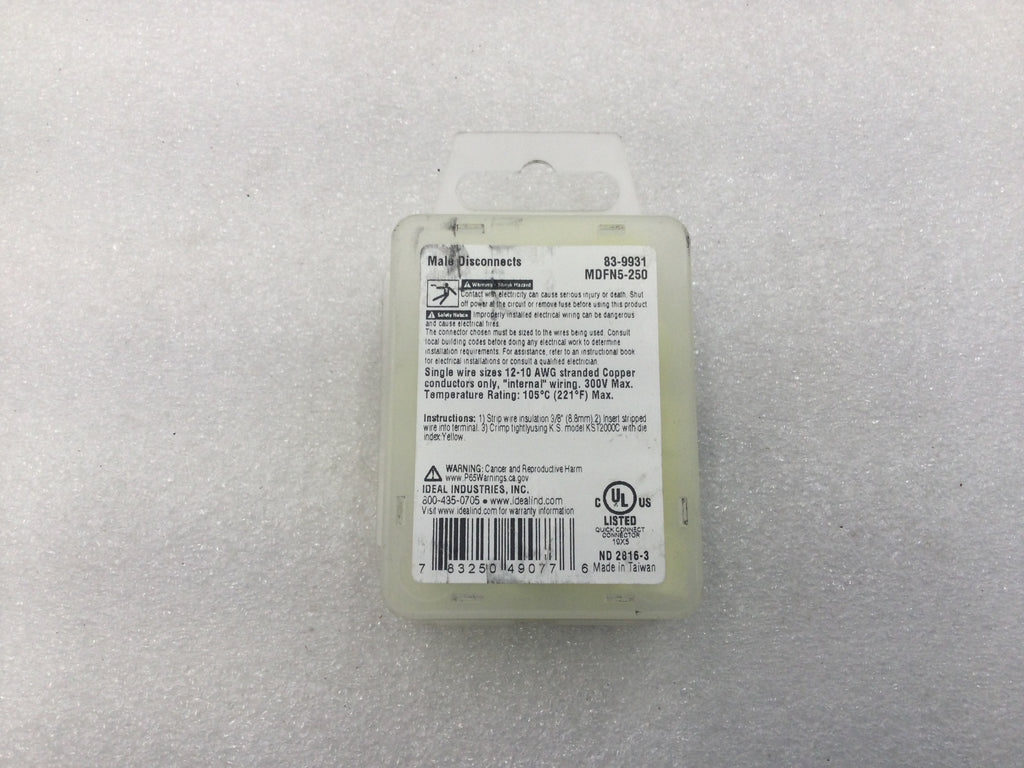 Boost your electrical projects with these Ideal 83-9931 #12-10 AWG 300V Fully Insulated Male Disconnects. This box of 25 provides high-quality and safe connections, suitable for a wide range of applications. With fully insulated design and durable construction, these male disconnects are a must-have for any professional electrician or DIY enthusiast.
