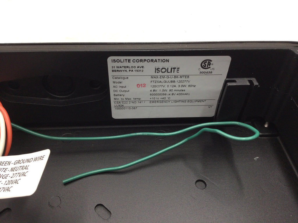 Maximize safety with the Isolite MAX-EM-G-U-BK-MTEB! This heavy duty, double sided exit light boasts green LED lights for clear visibility and operates on 120/277 VAC. Its die cast construction ensures durability, making it perfect for wet locations. Stay prepared with Isolite's MAX Series.