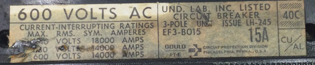 ITE EF3-B015 15 Amp 3 Pole 600V EF Frame Circuit Breaker