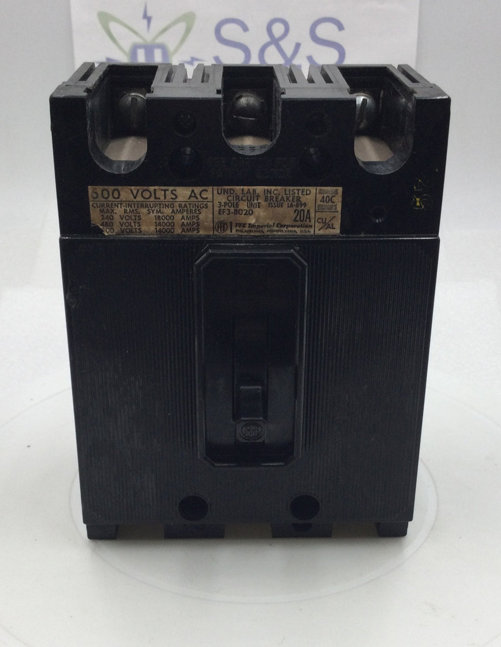 ITE EF3-B020 20 Amp 3 Pole 600V Molded Case Circuit Breaker