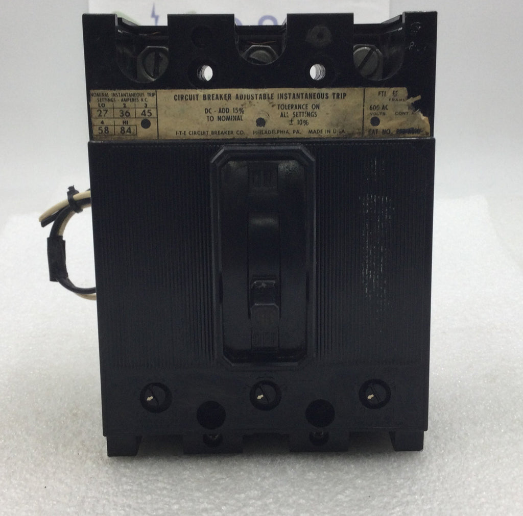 ITE EF3-A010 10 Amp 3 Pole 600V Molded Case Circuit Breaker w/ Adj Shunt Trip
