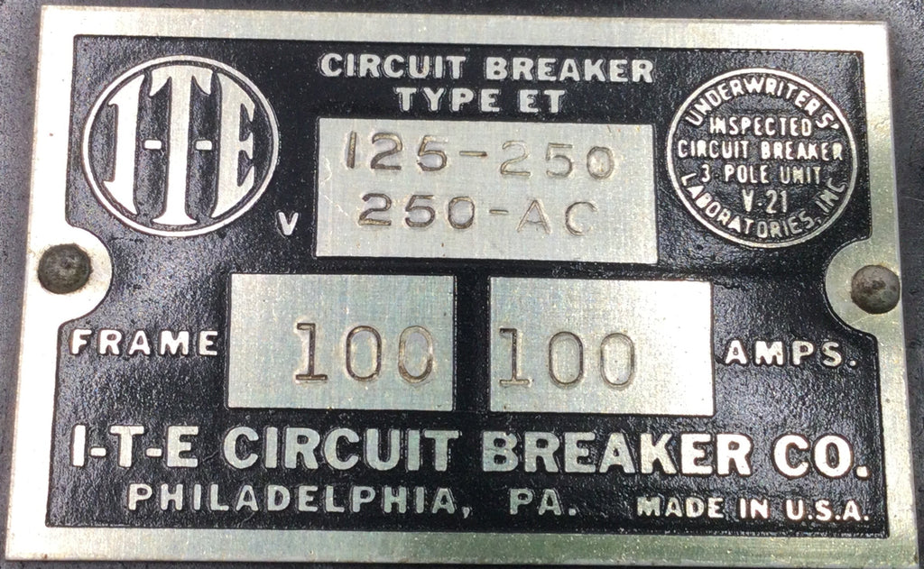 The ITE ET100 is a 100 Amp, 3-pole, 250V ET Frame circuit breaker designed for reliable electrical protection. Built to handle robust current loads, it safeguards circuits from overloads and short circuits. Note: This unit has a cosmetic flaw that does not affect its electrical performance or safety.