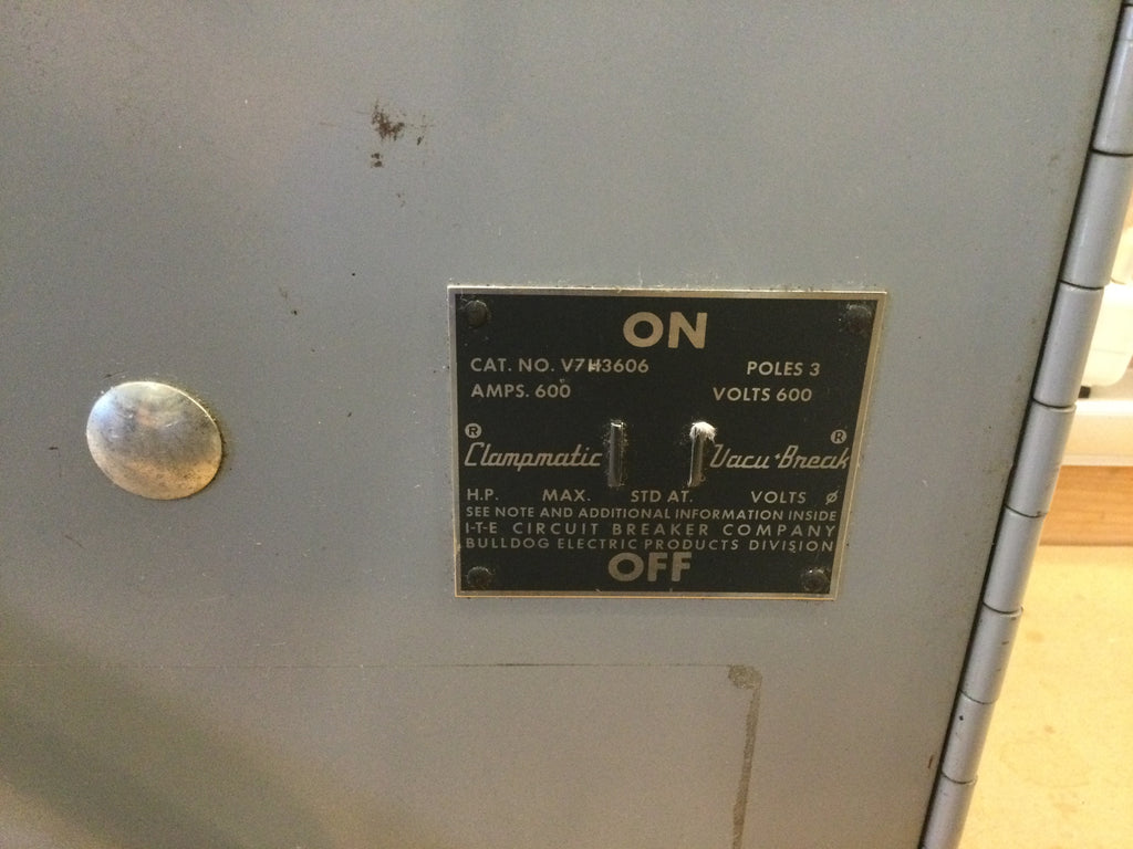 ITE Siemens V7H3606 600 Amp 600v Fusible Panelboard Switch