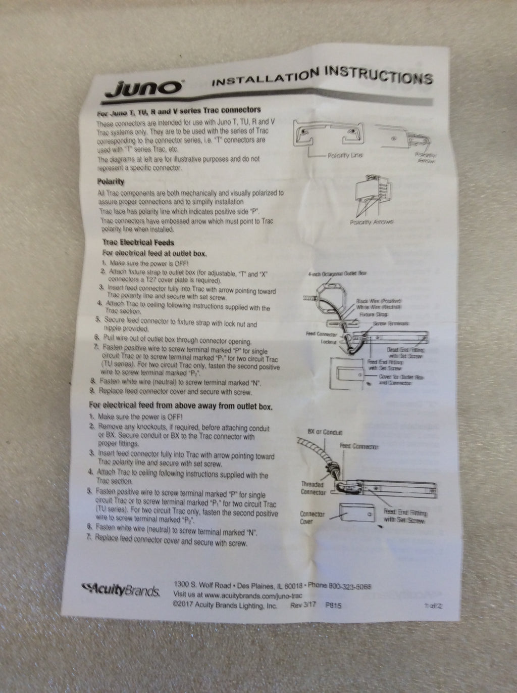 Juno Lighting TU23WH Trac-Lighting Electrical Feed Mini-Straight Connector (New Open Box)
