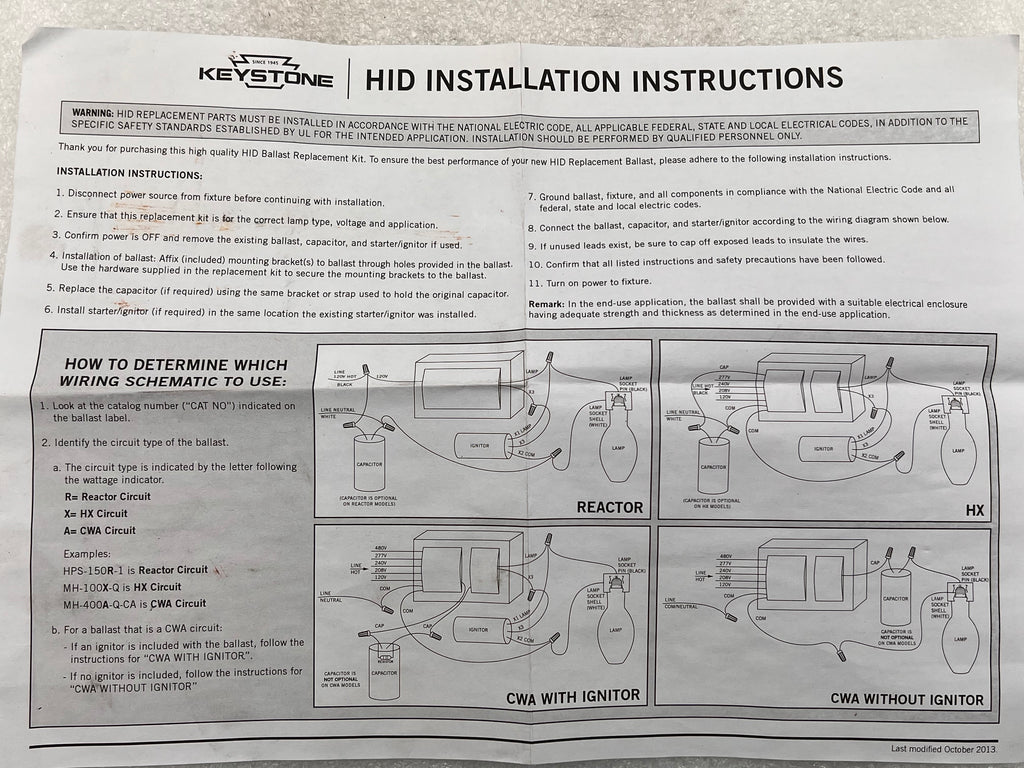 Keystone MH-175A-P-KIT Metal Halide Ballast Kit MH175APKIT