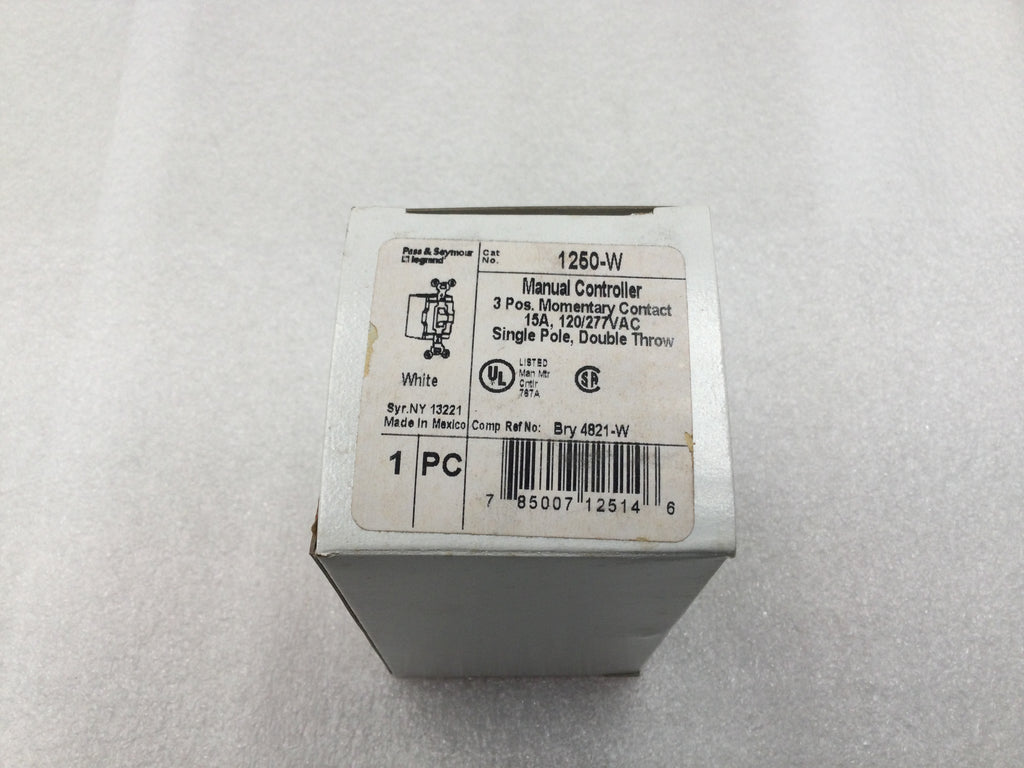 The Legrand 1250-W momentary contact switch handles 15 amps across three positions, ideal for temporary circuit control in commercial and industrial settings. White finish matches standard electrical installations. Engineered for reliable performance in demanding applications.
