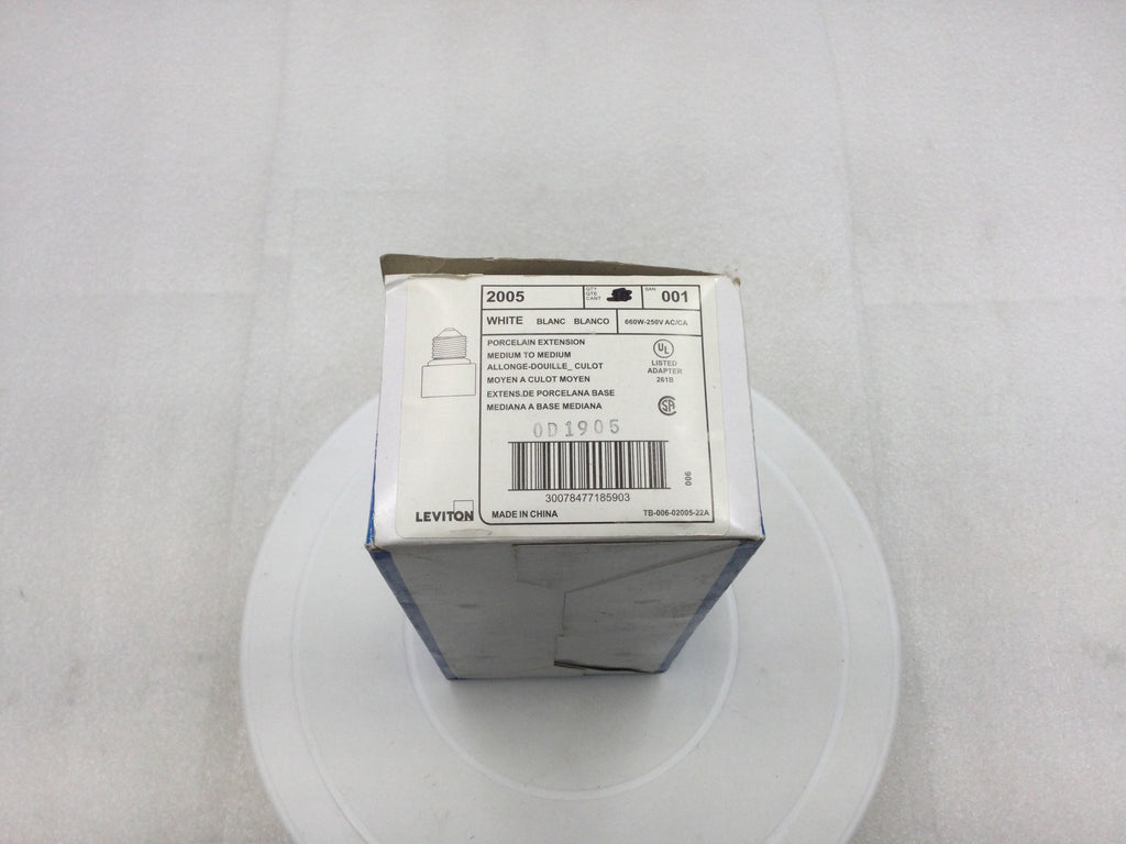 Leviton 2005 0D1905 Glazed Porcelain Lampholder Medium-Medium Base - White