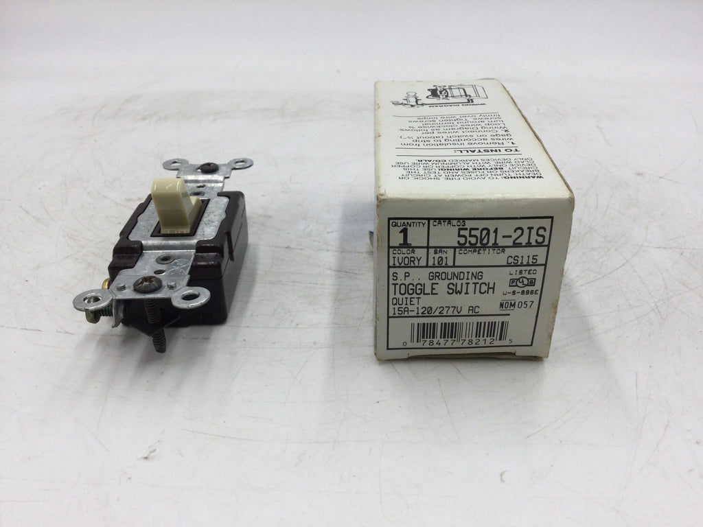 Leviton 5501-2IS CS115 Grounding Toggle Switch Outlet 15A 120/277V Ivory