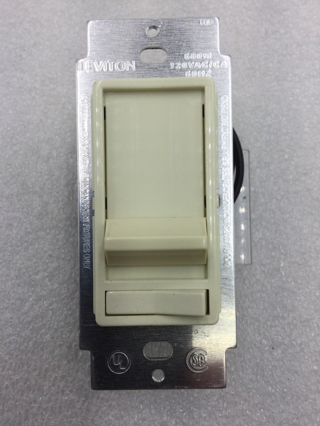 Leviton 6621-PA Decora Single Gang SureSlide Dimmer in Almond 600 Watt 120 VAC