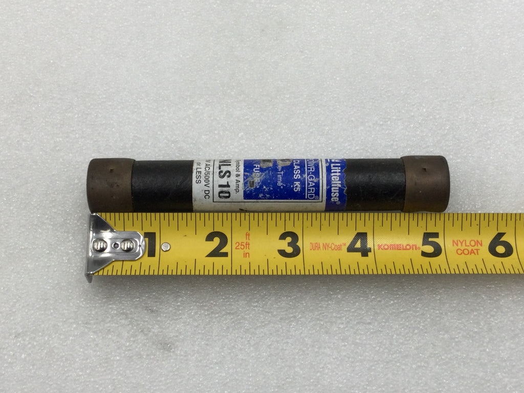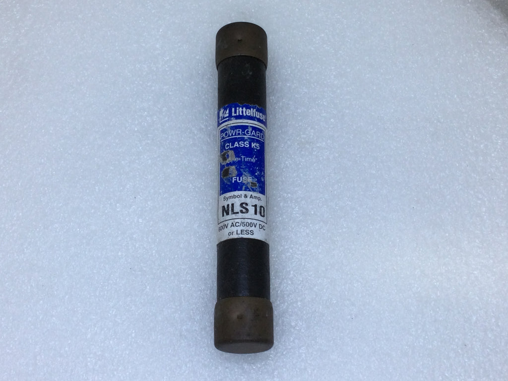 The Littelfuse NLS10 fuse. Offering a 10 amp capacity and capable of handling 600V or less, this one-time Class K5 fuse provides reliable protection for your electrical equipment.