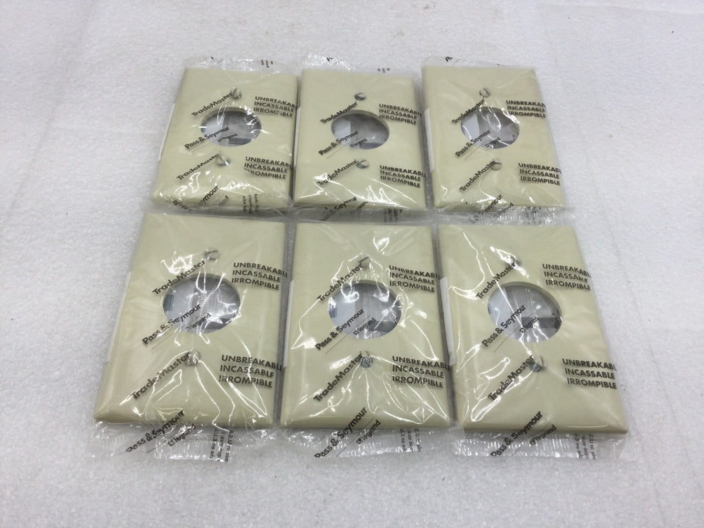 Lot of 6 Pass & Seymour TP7-I TradeMaster 1 Gang Single Receptacle Wall Plate in Ivory