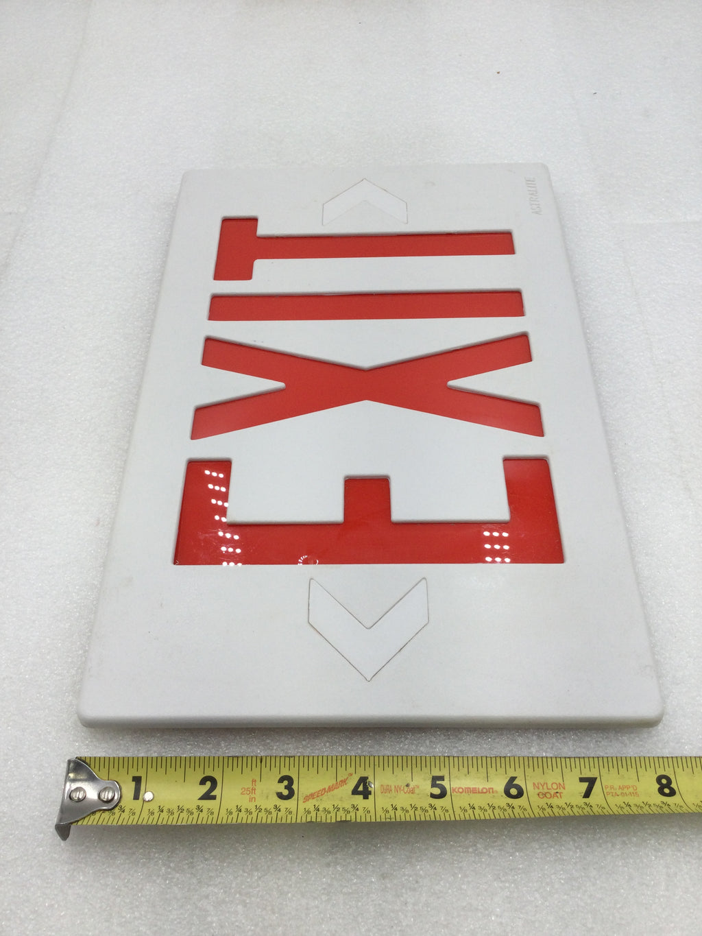 This Astralite Exit Light Cover is designed with a white base and red lettering, measuring 12.5" W x 8" T. It provides a sleek and professional appearance, while also ensuring high visibility in emergency situations. Perfect for commercial and industrial settings.