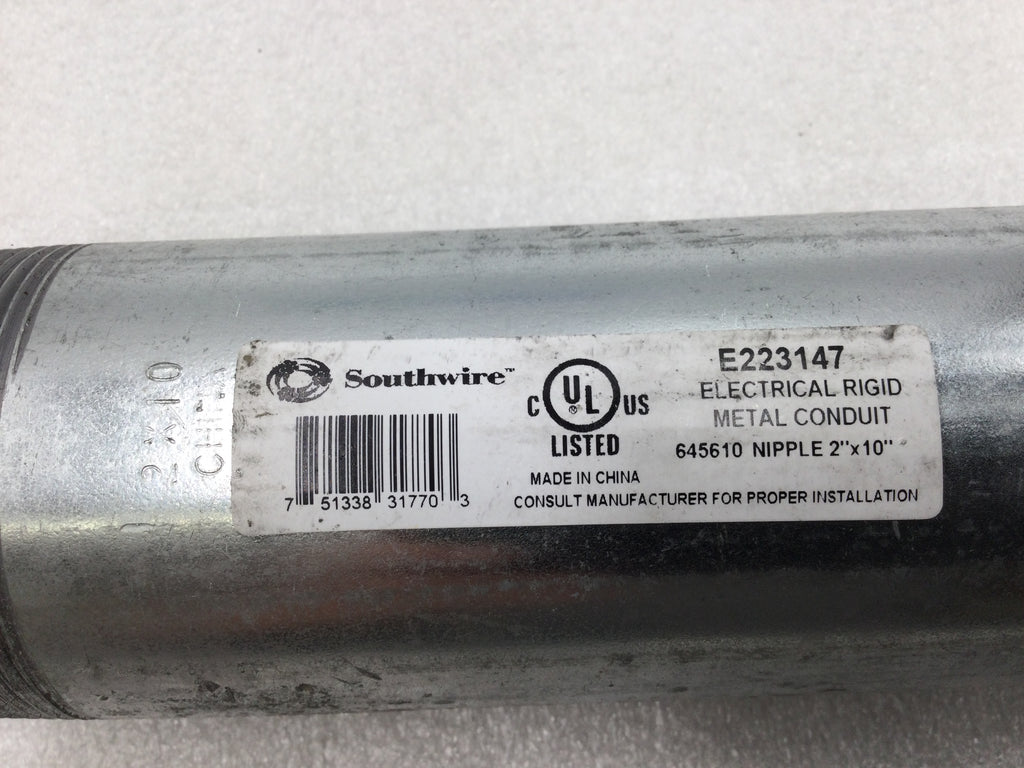 Install your electrical systems with ease using the Southwire 645610 Topaz UPC 2" X 10" Rigid NPT Threaded Conduit Nipple. This durable and reliable conduit nipple is perfect for connecting rigid metal conduits, ensuring a secure and long-lasting electrical installation.