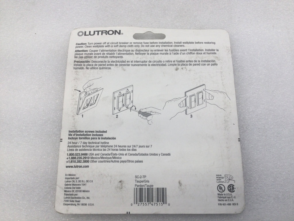 Elevate your home's style with the Lutron SC-2-TP 2 Gang Screwless Designer Wallplate. This lot of 2 sleek wallplates feature a screwless design for a clean look and easy installation. Perfect for enhancing any room in your home.