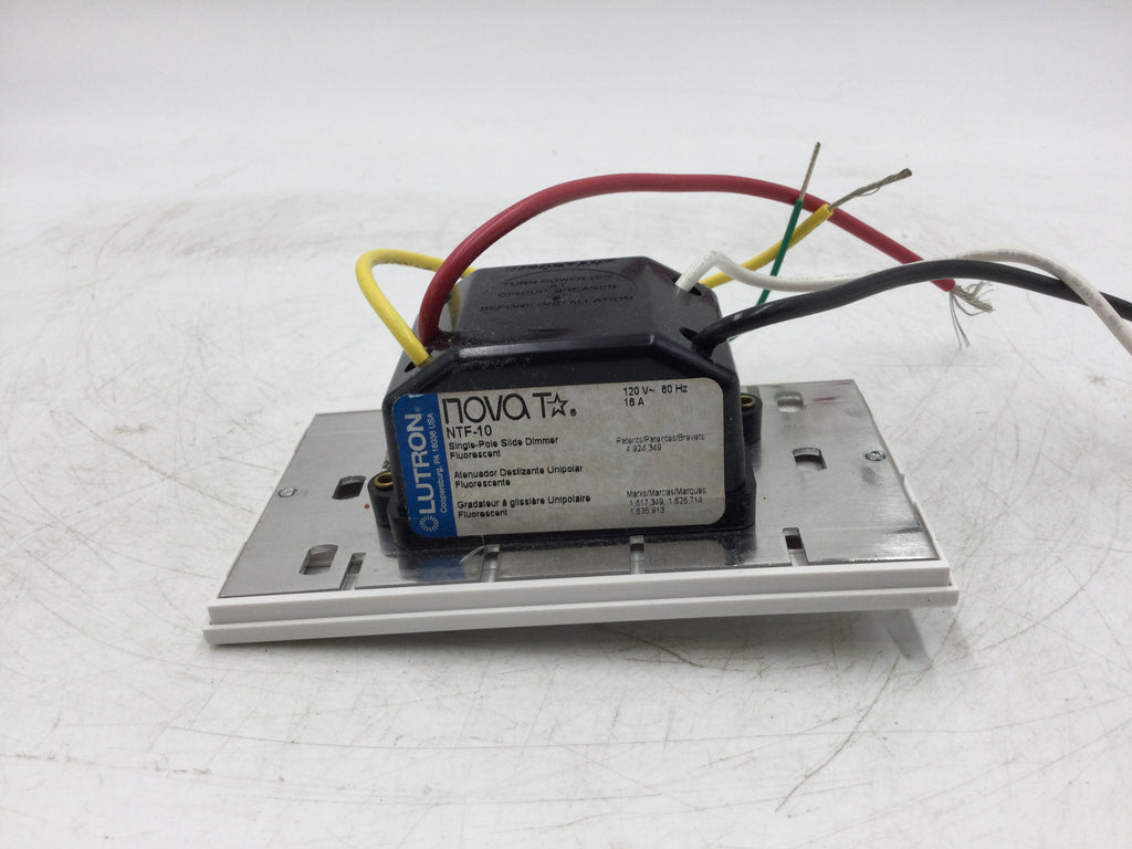 The Lutron NTF-10-WH Nova T-Fluorescent dimmer offers precise luminosity control and LED/fluorescent ballast compatibility. Its easy-to-use slider switch provides complete on-off control with a simple slide. Enjoy professional quality lighting at home with the NTF-10-WH.