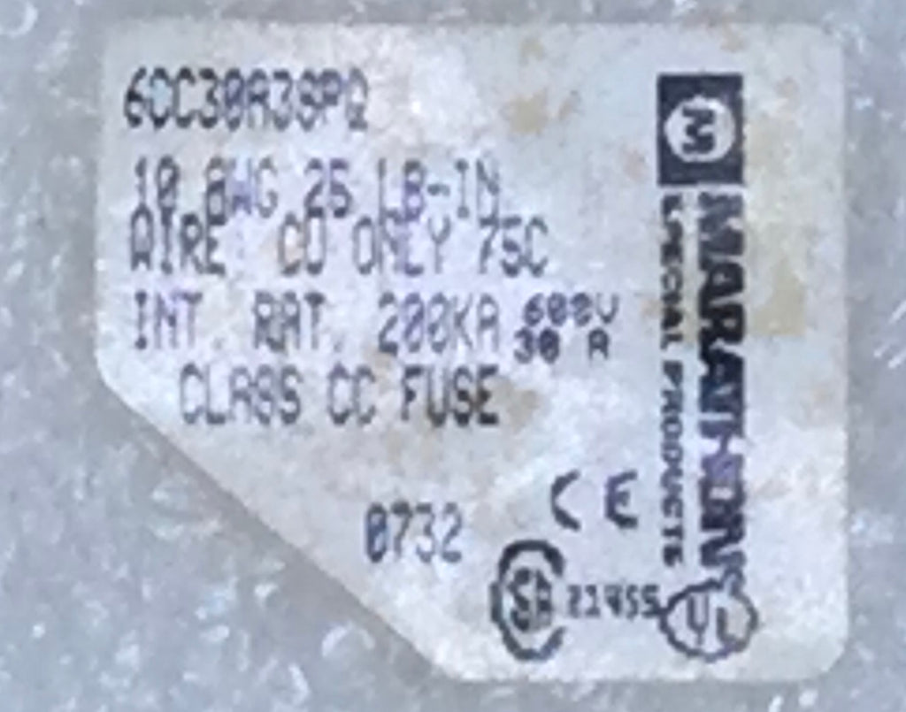 Marathon 6CC30A3SPQ 30 Amp 3 Pole 600V Fuse Holder